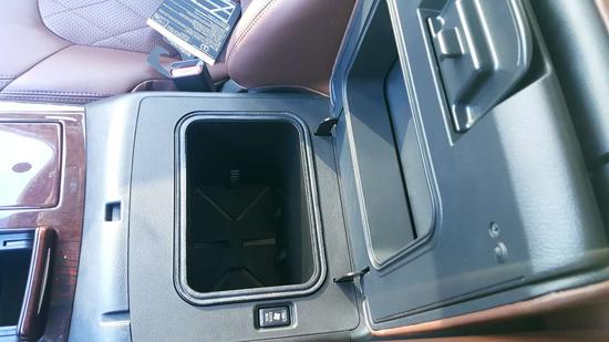 18款中东版途乐5.6LE顶配进入车身豪华的内饰呈现在我们眼前,选用米色真皮座椅,既显干净又显档次,中控面板也使用米色真皮包裹,特殊的缝制手法看不出一点的瑕疵,面板的下方带有储物空间。