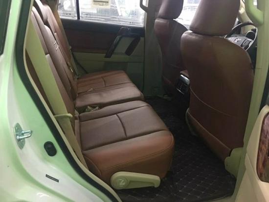 霸道2700外挂丐版配置:虽然是丐版,不过你依然可以有天窗可以供您选择,没办法,作为自家接车的一手经销商,我就是这么任性,后挂,2气囊,R17铁轮毂,丝绒座椅(中东版只有顶配限量版采用真皮座椅,其余一律丝绒座椅,如果你选了一台配置不算很高的霸道2700而配备了真皮座椅,相信我那一定是商家自己改装的),主驾驶电动腰部支撑,卤素大灯,后雾灯,黑色外后视镜,中网,门把手(好的,个人感觉观感还不错,不过大部分人都选择进行升级,升级费用的话也就几百块),车身稳定+牵引力控制+胎压监测(这些都已经是标配,安全性得到进一步升级)