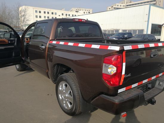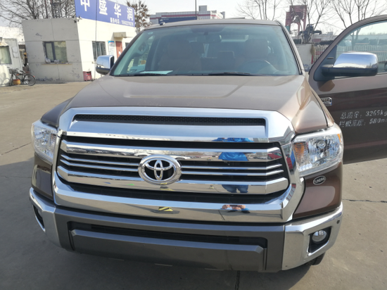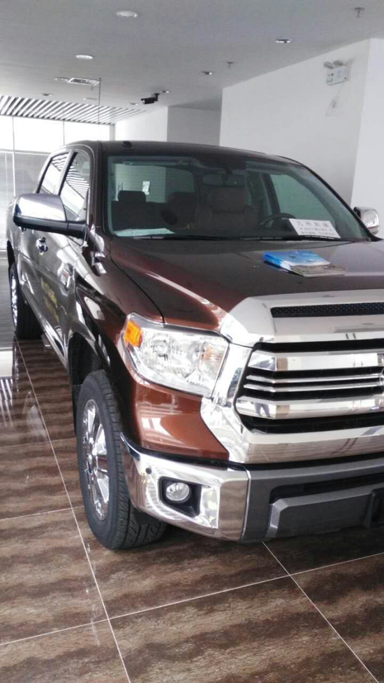 17款丰田坦途1794版加版庞大的车身也能完全能让那些路上平时很嚣张的高档SUV产生一股莫名的紧张感,全新驾驶辅助可以适应不同的路况,非承载车身,带差速锁的4驱系统,前双杈臂,后钢板弹簧。不管怎么说,这个土生土长的日本小伙儿已然进化为一个高大威猛的壮汉。丰田坦途皮卡天窗版硕大的前灯像是瞪大了的牛眼,所有的部件在坦途上面似乎都成倍放大,狂野气息昭然若揭。