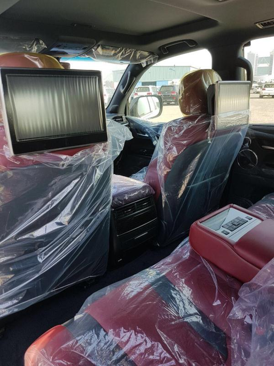 18款雷克萨斯LX570中东版内饰:实木材质方向盘(局部增加真皮包裹)兼具温润触感与典雅质感,三幅式设计令操控更加得心应手,在尊崇气息之上平添一分动感魅力。真皮部分可在短时间内加热,即便在寒冷的天气状况下,也能保持对温度的掌控感。木材的纹理与质感,都经过专业设计师的精心匹配和挑选,打造独具匠心的别致细节。精心鞣制的半苯胺高级真皮座椅,皮质专家花费数月的等待和甄选,只为令您在触摸瞬间尽享非凡质感。出色的仪表盘架构,经由设计师重新布局,配以豪华而先进的设计,莹亮的光电子仪表盘清晰易读。在您按下发动机开关的刹那,整个仪表盘会瞬时被蓝色光芒照亮,渲染豪华的内室气氛。