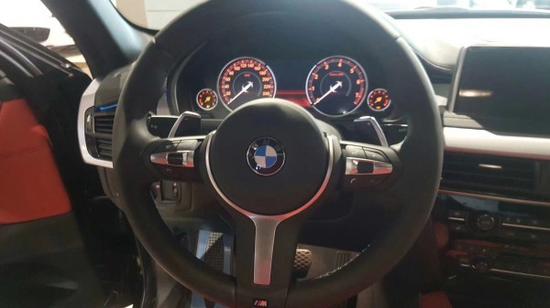 展位现车 17款加版X6M 黑/红 21轮 全国仅此一台21轮大豪华包(智能卡、360°环影,并道辅助,电吸门,抬头显示、哈曼音响,液晶仪表,多彩氛围灯四区空调, 前后座椅加热,20项座椅调节带电动腿托,方向盘加热,后遮阳帘,腰部支撑,车道保持)金属漆M运动包(M运动套件,M自适应空气悬挂,运动变速箱,高亮黑色饰条,换挡拔片,真皮运动方向盘,陶瓷换挡杆,高性能防爆胎,21寸轮毂),21寸轮毂,辅助驾驶,哈曼,珊瑚红皮革,智能手机连接,金属漆,手写板,触摸屏电话