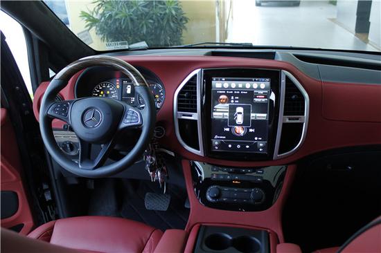 虽然中控台没有奔驰V级 (配置|询价)商务车的内饰那么豪华感十足,但是超大液晶显示屏提供更多操控和了解车辆的数据,多功能方向盘在行驶途中更加方便驾驶员操作中央扶手箱采用冰箱代替扶手箱的设计在外出途中可以冷却各种饮料香槟等酒水。配有冷热杯架更加舒适。