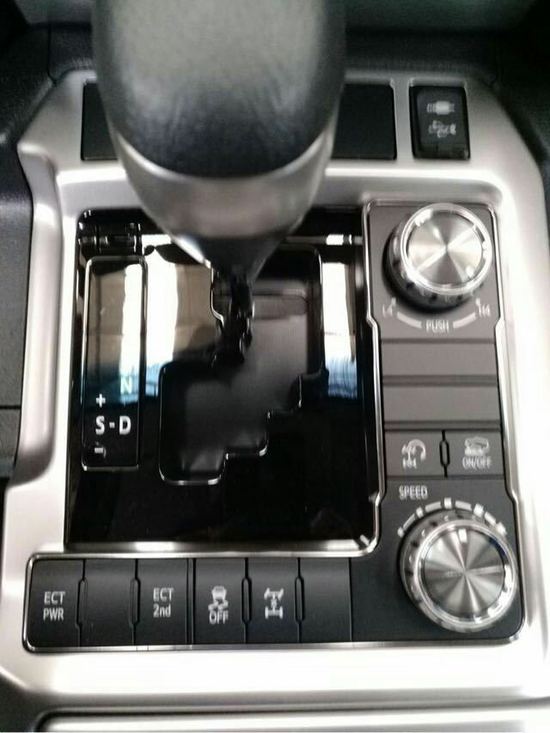 17款丰田兰德酷路泽4000变化最为显著的非中控台莫属了,不过虽说“显著”倒也仅仅是停留在材质的变化上。全新的黑色钢琴漆与亮银装饰条的组合大大提升了内饰的质感,而多媒体控制区内的镀铬装饰则让布局规整的中控台看起来更为体面。丰田酷路泽4000整体的内饰风格有些粗狂,又显得很运动,配置一应俱全。方向盘上面的多功能按键布局依旧没变,左侧为音响控制按钮,右侧为蓝牙电话按钮和定速巡航小拨杆。