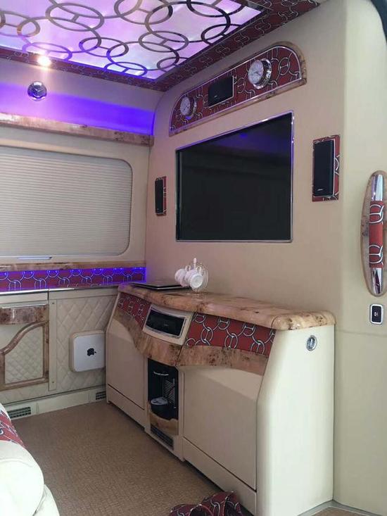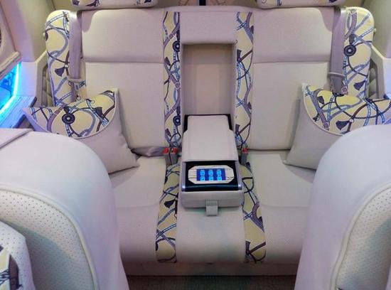 奔驰斯宾特爱马仕版在第二排和第三排之间增加可拆卸商务桌板,桌板采用雀眼枫木桌板,彰显了这款车的豪华设计。