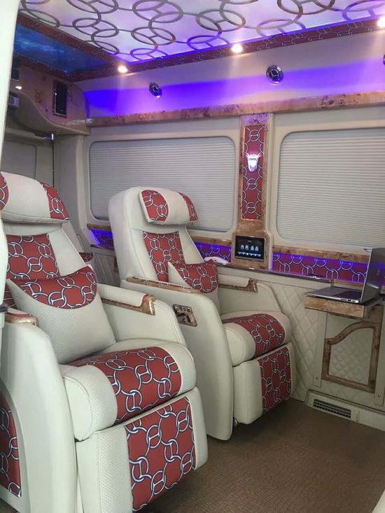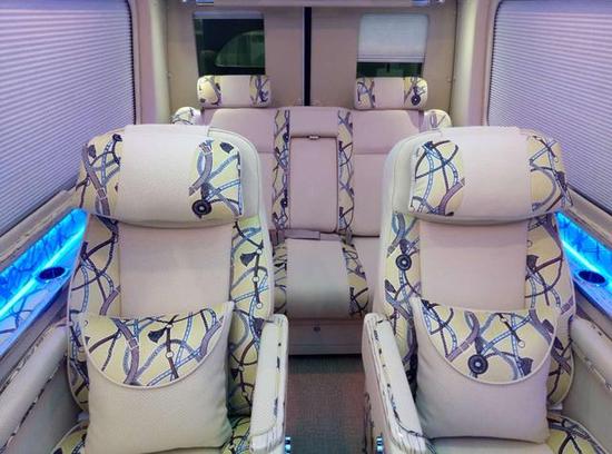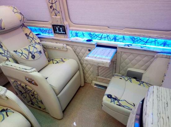 奔驰斯宾特舒适的按摩椅除了具备按摩解乏的功能外,还可以360度自由旋转,还带一台进口咖啡机,因此旅居认识可以自由选着座椅角度,或休息,或聊天喝咖啡等。奔驰斯宾特真皮豪华J型座椅舒适安逸,为了商务需求,斯宾特商务车还配备了原厂桃木插地式小桌板和原厂电脑办公专用接口,让您的商务旅途一帆风顺全程无忧。