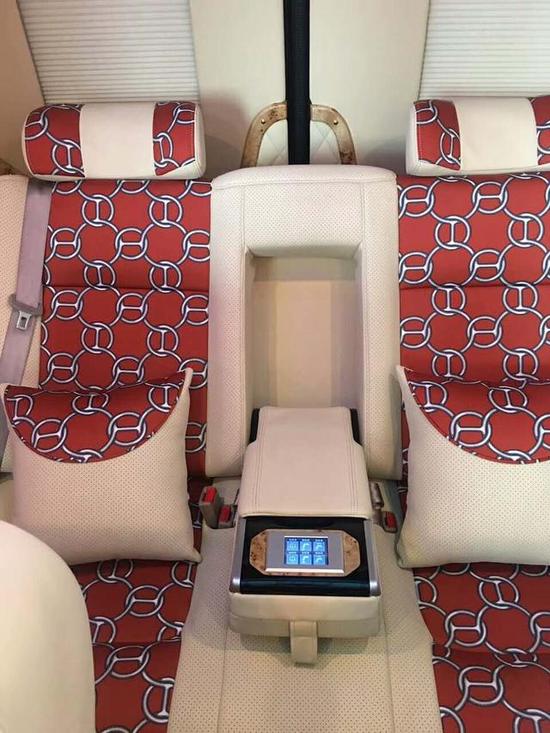 第三排沙发,乘坐空间阔绰有余,电动躺平成床功能强大,且带有4个独立抱枕,亦由爱马仕经典图案真皮缝制,车内的任何一件单品,即便用于零售,价格依然不菲。