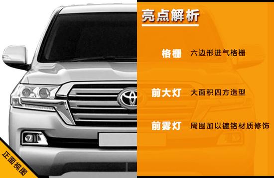 外观方面:18款丰田酷路泽4000中东版是一款能胜任任何场合的高端SUV车型。霸气的外观用言语不足以诠释的,稳重之余又不乏充沛的运动精神,全新设计的保险杠和进气格栅使其前脸更具有动感。长*宽*高(mm):5095*1970*1930 轴距:2850 mm 满载质量:2600KG
