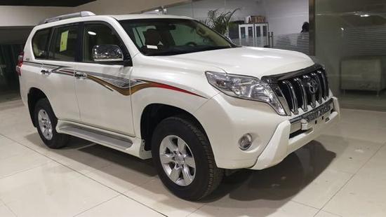 丰田霸道2700 白/米 配置:天窗 后挂备胎,加装:米色真皮座椅(七座 ) 导航倒影 多功能方向盘 主副驾驶电动座椅 雾灯 前小杠 镀铬前中网 镀铬后视镜 镀铬门把手 前排座椅加热 车身彩条 拖车钩 航空脚踏 行李架 17寸原车铝制轮毂(肆个) 后备胎罩,备胎标