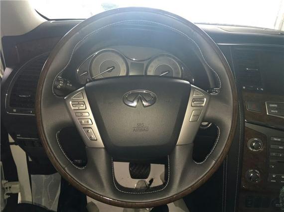 英菲尼迪QX80车内采用电子冷发光仪表盘,匹配8英寸高分辨率彩色触摸屏幕;方向盘带巡航、音响以及电话按键,并可实现加热功能;新款QX80还带有内存为40GB的硬盘导航系统,以及9.3G的音乐存储空间。在通信系统上,新款QX80配备互动式车载信息通信系统以及实时道路交通信息系统,为驾驶者用车时提供实时的道路信息。