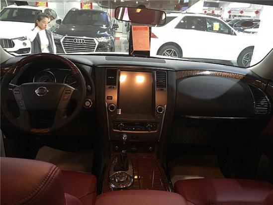 2018款日产尼桑途乐Y62内饰不像外观那样霸气,稍作收敛,仪表盘采用传统的设计,中间的液晶屏幕可以显示常用的行车信息。改装真皮座椅,提升舒适性和豪华性,铝以及木纹样条作为点缀,以浅色调为主,营造出了轻松惬意的驾驶环境。方向盘采用了豪华轿车惯用的四幅方向盘,手感极佳。