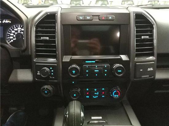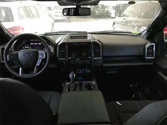 新款F150它的表面颇具动感,内饰奢华,配置富厚,同时兼具跑车的动力机能、越野车的全地形制霸本领和豪华轿车的乘坐恬静性,并且它的改装空间也很大。车内配备标准独特的皮革和布艺装饰的座椅,驾驶员侧的电动十向调节。这些座椅同时具备记忆功能。中央控制区搭配了触控式显示屏,其下方则是多媒体控制区及空调面板,采用旋钮+物理按键的组合。中控功能区域可分为三个小控制区,最上端为音响控制及导航控制,中间为收音机调节控制,最低端为空调及座椅加热控制。在内部空间的庞大基础上,福特也提供了非常具有舒适性与服务性的内饰配置。另外,新车还配备了一块大尺寸的全景天窗。