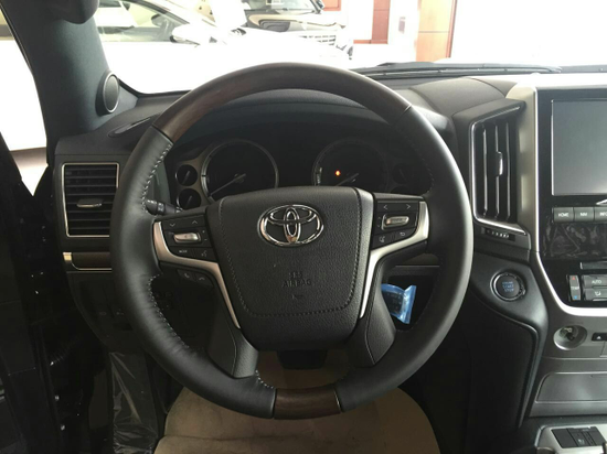 丰田酷路泽5700顶配整个操控区域色调为深色系,仪表盘、方向盘和排挡等位置均配以桃木装点,尽显豪华质感。不但具有DVD导航,这款车的倒车影像还可以显示在内后视镜上;中央扶手箱还装备了冷藏箱,这些都与中规版车型有所不同。