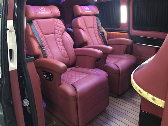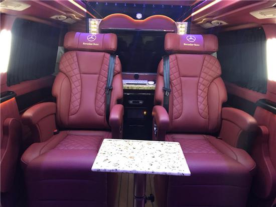改装过的奔驰威霆 (配置|询价),车身尺寸达到了5370*1950*2100mm,外观加装的高顶设计则为满足更优渥、舒适的乘坐体验。咨询热线:15811007765
