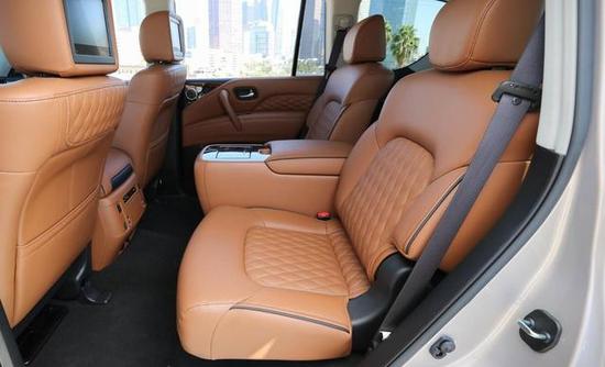 17款英菲尼迪QX80[白棕、黑棕] [黑米、白米、酒红棕]手续齐,现车 398马力、V8、7挡手自一体、全时四驱、八个气囊、胎压监测、车身稳定系统、环车影像、定速巡航、中央差速锁、电动天窗、铝合金轮毂、电尾门、行李架、一键启动、无钥匙进入、多功能真皮方向盘、腰部支撑、后排娱乐、雾灯、氙灯HBMC液压车身平衡控制系统、BOSE音响13个扬声器、自动开关双氙气大灯、带弯道辅助照明系统、集成式日间照明、远光灯辅助、主驾、副驾8向调节、停车辅助、遥控启动 、MOD第三代环影、座椅记忆、第三排电动、22轮、桃木内饰、7寸触摸屏、后排空调。