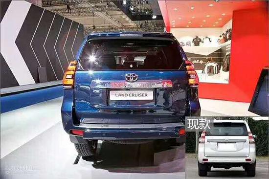18款丰田普拉多改款新车尾部上部还配备下压式尾翼设计,上面还集成了高位刹车灯设计,尾灯采用红色和白色双色设计,配备隐藏式排气管设计,保留了后挂轮胎设计,看上去更加霸气。