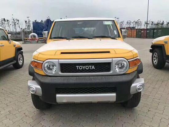 款式:17款FJ酷路泽颜色:黄/黑 配置:17铝轮,脚垫,8气囊,车身稳定系统,后雷达,前雾灯,踏板,半皮座手动座椅,指南针,遥控门锁,银色门把,银色车门后视镜,双油箱,手动空调。后差速锁,USB接口,JBL音响,定速巡航,真皮多功能方向盘,蓝牙,胎压监测,镀铬套件,防眩目后视镜,倒影,蠕行模式。
