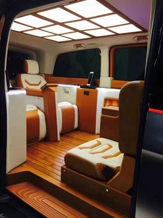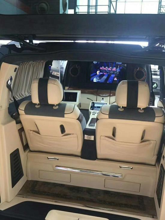 17款奔驰Metris配置:前后车身同色AMG大包围带LED日间行车灯,双色电动门,蓝色恶魔眼,集成转向灯后视镜,行李架,整车镀铬装饰,脚踏板,防擦条,LED不锈钢迎宾踏板,行云流水顶棚,化妆仪容镜,标配实木地板,打孔真皮,钢琴烤漆,实木方向盘,真皮中控台