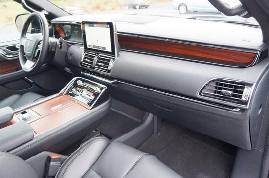 2018款林肯领航员全铝车身不仅可以提升整车的刚度,还大大降低了车辆的总重,提升车辆的动力性和燃油经济性,值得肯定。3.5T涡轮增压动力通过新的六速自动变速器传递到四个车轮。疏齿比变速箱不仅可以提供更快的加速性,而且可以降低油耗林肯领航员中控台的造型与宽大的黑色车身相呼应。美式风格浓厚的22英寸轮毂显得更加漂亮。内部设计精致而细腻,与外表风格正好相反,突显其舒适、实用和高效的性能。皇家座椅、加热、推托及电动调节,可升降分隔屏,前后对讲电话等等,后排的空间和配置让人震撼。