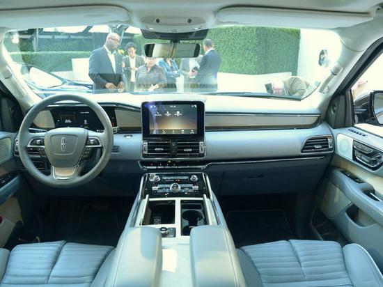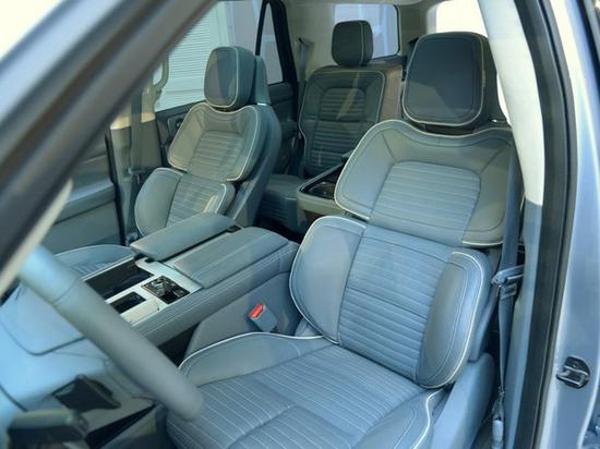 林肯领航员中控台非常简洁、大气,中控台有一个超大的立式显示屏,并且第一排和第二排头枕后方共有四个超大的显示屏。另外,值得一提的是,新车车内采用了独立4座的布局,座椅设计是一大看点,极为宽大,座椅靠背为分体设计,座椅拥有强大的30向调节功能。