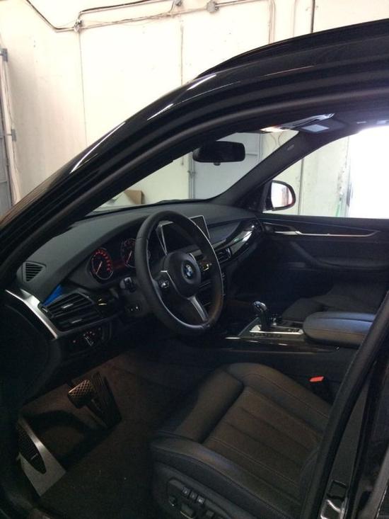 内饰方面:宝马X5车内彰显出强健的气魄和全面的道路适用性。真皮的多功能方向盘手感极佳,宽大的中控台简洁流畅,多功能电动驾驶座椅舒适性十足,整车采光效果十分出色。精准的操控、人性化科技配置以及自身品牌优势都是新一代宝马X5有力的武器。