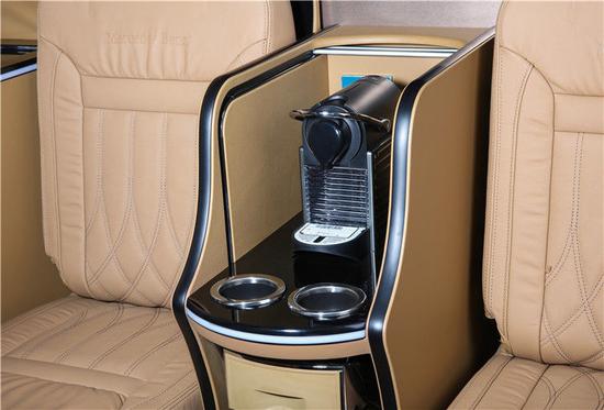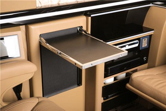 奔驰斯宾特房车中置小桌板功能强大到简直感人,不需要它时可以老老实实的在角落里边儿安分呆着一声不吭,使用时支持电动一键拓展,自觉的沿着地板上的滑轨完成伸展运动,其配备的USB接口相信对于现在的手机党应该是个福音吧,另外侧边车壁上还有独立的220V电源插座,以及为我们偏爱品酒的朋友们准备的蓝光玻璃酒柜!