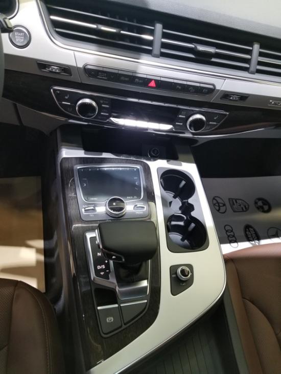 新款奥迪Q7在内饰设计上简直有了天翻地覆的变化,简洁的中控台配备有8.3英寸的可收纳液晶显示屏,并采用铝制和木质饰板相搭配,更加突显新车的豪华感与科技感。彻底贯彻了奥迪科技生活的理念,全数字化液晶仪表盘,多功能方向盘、全新电子挡把、带有大尺寸手写板的MMI系统一应俱全。仪表台做工十分精细,各相关接缝均匀,与车门处的间隙合理。
