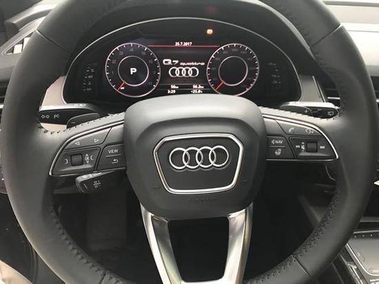 17款新一代奥迪Q7的内饰造型是典型奥迪风格,材质高档、做工精细,真皮座椅和方向盘、深棕色木纹装饰的点缀都体现出了低调的豪华感。还有仪表盘的水滴造型很别致,中控台的功能键排列有序,在排挡杆的周边,布置了MMI多媒体交互系统和一键式启动按钮,体现出奥迪崇尚科技的一面。新款奥迪Q7配置的第三代MMI多媒体交互系统是新奥迪Q7豪华配置的又一亮点,首次装备的3D立体导航系统将城市中的重点建筑物以立体的方式显示,便于驾驶者更高效地识别目标。最新设计的“opensky”全景天窗为奥迪Q7增添了独特的魅力。三合一的全景天窗,长度达到170厘米,由三层玻璃组成,可覆盖全部3排座椅,超越了迄今所有的SUV。