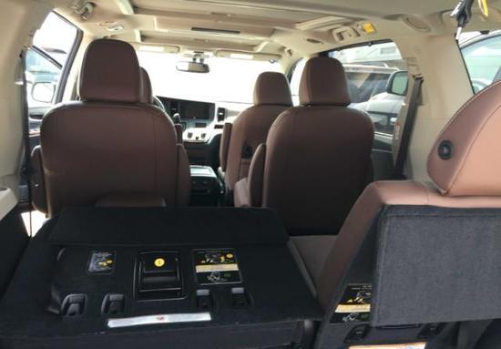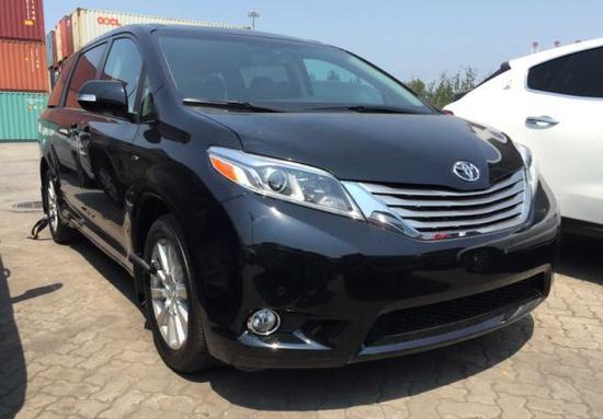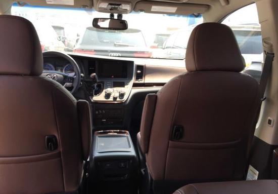 17款丰田塞纳3.5加版四驱顶配Limited参考价格58万现车, 配置:8速,金属漆,一键启动,双电动门,双天窗,无钥匙进入,前座椅加热,盲点(并道辅助),后部车辆靠近警示, 18寸全气候防爆轮胎, LED日间行车灯 ,自动防眩目后视镜 ,真皮加热方向盘, JBL高级音响 ,吸顶DVD ,7寸显示屏 ,驾驶员座椅带记忆, 高级真皮座椅, 前后泊车探头, 宽角度倒影, 镀铬装饰, 电动折叠后视镜, 雨量感应雨刮, 光感氙灯, 三区空调, 倒车影像。