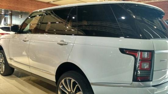 2017款路虎揽胜创世加长车身侧面:车身侧面的设计,创时间长装备的是22英寸的刀锋轮毂,这款轮毂也是创世加长里面独有的轮毂设计,22英寸的轮毂优势,再通过一些坑坑洼洼的烂路是,可以有效的降低颠簸,更有效的过滤掉胎噪,提高整车的操控性,更加提高车子的通过性,使车子平稳的通过。