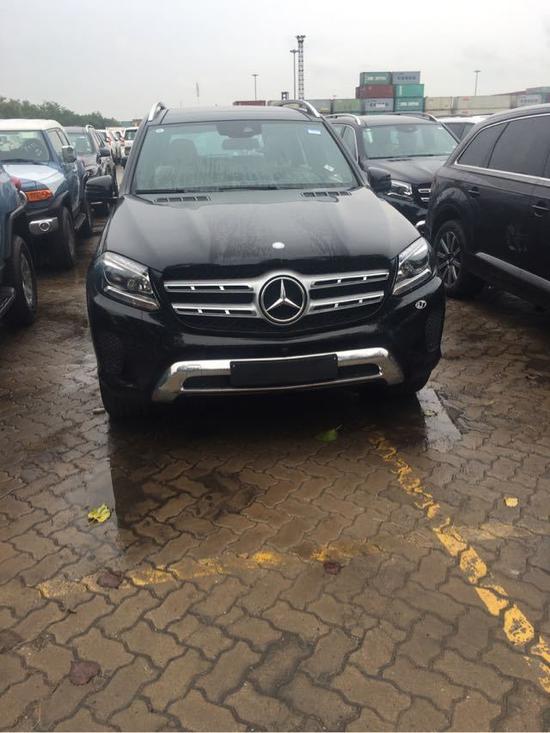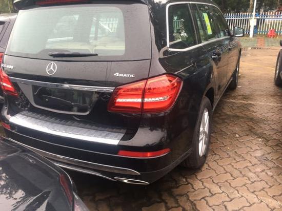奔驰GLS400配置:第三排电辅助座椅,前座椅加热,门电源锁定,无钥匙启动,后档板,ECO启动停止功能,18寸铝合金轮毂,主动发动机罩,自适应刹车灯带闪烁LED ,远程在线,主动制动辅助,真皮多功能方向盘,奔驰紧急呼叫系统,通信模块,全景滑动天窗,自动九速传输,黑色车顶内衬,油底壳护罩,无线音频,CD,冷气机,卤素大灯,日间行车灯,行李箱盖,桉树内饰,全地形模式反馈,底盘升降