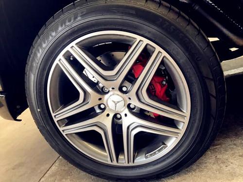 17款加版奔驰G63的轮毂分为两种,第一种是五角星熏黑AMG轮毂,如图所示。尺寸为R20