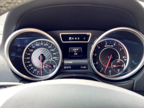 奔驰G63的仪表盘绝对是一大亮点,双炮筒的设计,战斗气息很强,仪表内带有碳纤维的装饰,这是G系其他车型所没有的。