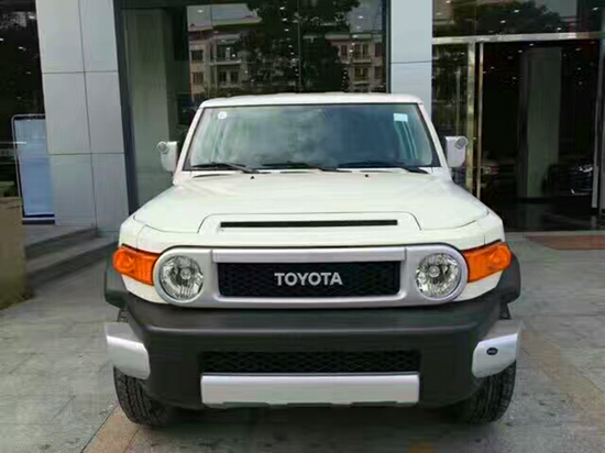 17款中东版丰田FJ酷路泽4.0自动四驱 顶配 配置如下:FJ AT 2017款,4.0 V6,268hp、5600rpm,5速自动挡,分时四驱,前后碟刹ABS+BA+EBD+ATRC+ VSC 8气囊,双油箱159升,儒行模式,胎压监测,双差速锁,JBL高级音响,265/70R1合金轮毂,挡泥板,发动机防盗,电动镀铬后视镜,脚踏板,数码钟,前后雨刮,蓝牙免提,收音机,6CD,USB,AUX,10扬声器,真皮多功能方向盘,带音量、蓝牙控制,巡航定速,电眼,镀铬套件,倒车影像,脚垫。