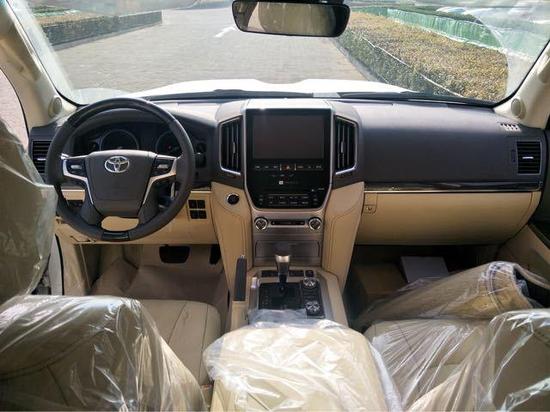 内部空间非常充裕17款兰德酷路泽5700新车操控台没有过于繁杂的操控按钮,但却凝结了越野车型在简洁之间将所有功能集结于其中的驾驶乐趣。内部空间采用了符合人体工学的设计理念,内部空间非常充裕,座椅采用真皮包裹。也在继承传统底盘的基础上焕然一新。17款丰田酷路泽5700整个操控区域色调为 深色系,仪表盘、方向盘和排挡等位置均配以桃木装 点,尽显豪华质感。不但具有DVD导航,这款车的倒车 影像还可以显示在内后视镜上;中央扶手箱还装备了冷藏 箱,这些都与中规版车型有所不同。