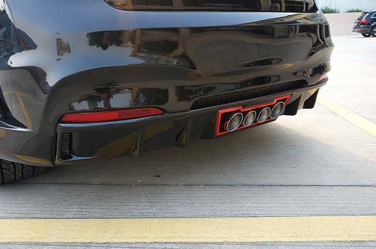中置四出排气是这套包围最大的特点,为宽体包围设计画上了最浓重的一笔下面是这套包围的细节图赏