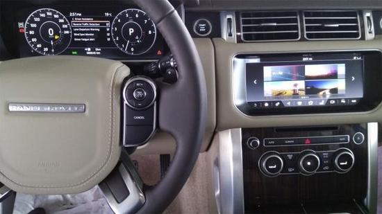 17款美规路虎揽胜 (配置|询价)行政HSE汽油大功率380匹马力3.0T,颜色:白米 配置:HSE包,驾驶员辅助包,视觉辅助包,825W高级音响包,四区空调包,保护包,桃木加热方向盘,轮毂锁*一、HSE包(14项牛津打孔真皮座椅、电吸门、LED氙灯、智能卡、前座椅通风、前后座椅加热、方向盘加热,20寸轮毂、全景天窗、脚感电尾门、三区空调、电动折叠记忆后视镜)*二、视觉辅助包(自适应氙气大灯带LED日间行车灯、自动远光灯辅助、前雾灯、第二代地形反馈系统、360环车影像、可调氛围灯、全地形控制模式)*三、驾驶员辅助包(驾驶者状态监测、车辆前后盲点监测、交通标志智能识别及智能限速)*四、高级音响包(825瓦高级音响)*五、四区空调包 前后座椅通风 前排扶手箱带冰箱。