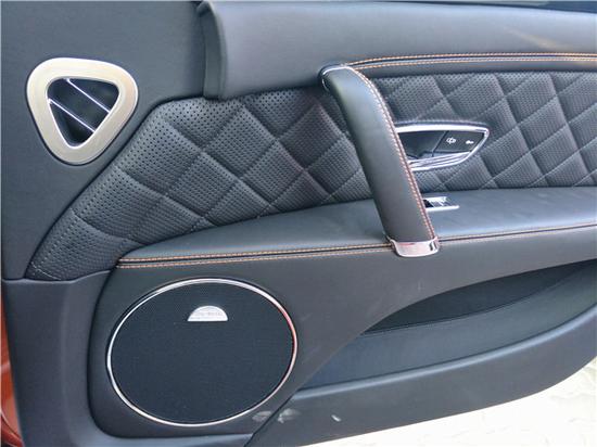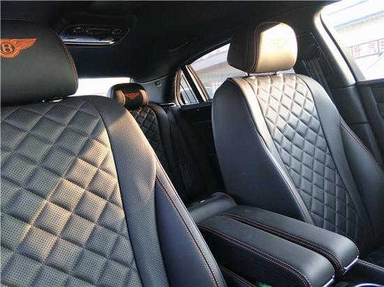 17款宾利飞驰V8S真皮座椅的椅背及坐垫采用了大量菱形打孔处理,视觉效果很漂亮。皮 质柔软,座椅填充物软硬适中,电动调节、三组记忆、加热通风以及按摩等功能一应俱全,无可挑剔 。飞驰为后排乘客提供了一套名为TSR的控制器,能对后排空调、遮阳帘、娱乐系统等进行控制,这套 触控设备整体用户体验还算不错。