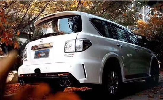 2018款日产尼桑途乐的中网面积极大,基本占据了整个前脸,并加上了镀铬装饰,营造出了日产家族式前脸。2018款日产尼桑途乐尾部装配了单边共两出的排气系统以及全新造型的22英寸锻造铝合金轮圈,整车风格更加运动。