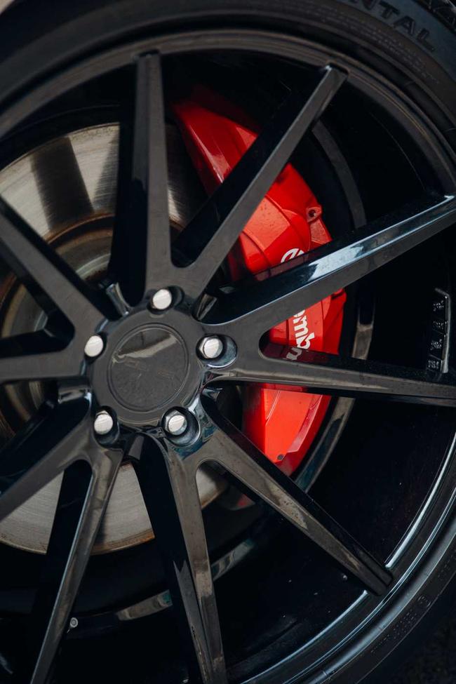 从前脸来看,它采用双辐式进气格栅,梯形的保险杠和下护板显示了其一丝野性。侧面的腰线倾斜向上,和车顶营造了一种运动的氛围,而两侧翼子板通风口进行了更加动感的倾斜处理,相比于上一代揽胜运动版近乎平行的侧面线条,这一代显得更加动感。轮圈方面,车主选择了亮黑色的VOSSEN VFS1轮圈,其条辐设计干练、简洁,和这辆车搭配起来非常合身,而原厂就标配的红色Brembo大六活塞制动套件,也做了很好的衬托和点缀。