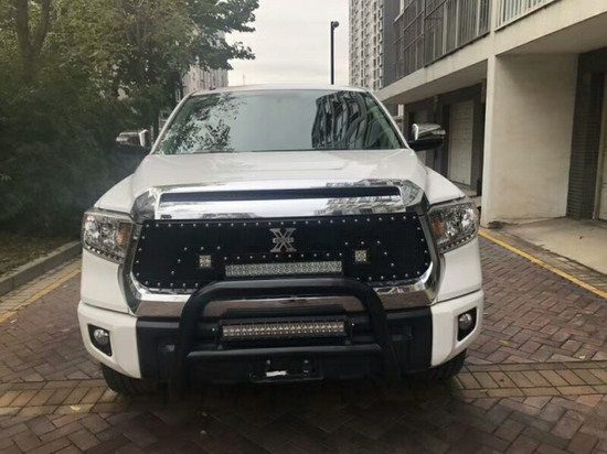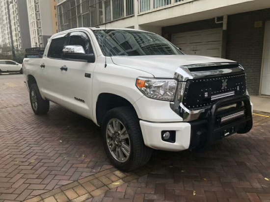 丰田坦途1794版皮卡前后镀铬保险杠也较为突出,置身车前,可以充分感受到他的粗犷与豪放。典型皮卡风范,傲人的尺寸加上大排量的发动机,粗狂的线条中多了几分秀美,让人万分垂涎。新车外形设计具有明显的美式风格,宽大的进气格栅几乎占据了整个车头部,与边角略微上扬的车灯组成了近似牛头的图案。