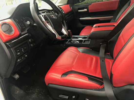 丰田坦途1794不仅在公路上能独当一面的风光,在停车位上可能也得需要额外的照顾。 内部装饰更接近SUV车型,木质的应用让这辆卡车拥有了几份细腻典雅的感觉,车内中央车顶储物格及面板一气呵成,木质的应用让这辆卡车拥有了几份细腻典雅的感觉17款丰田坦途1794版在内部设计上,座椅全部采用真皮制作,方向盘和档把为桃木制作。肌肉感的设计同样延续到内饰的设计中。