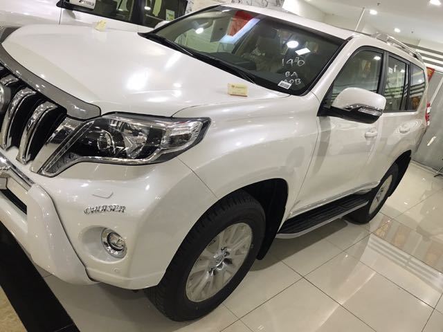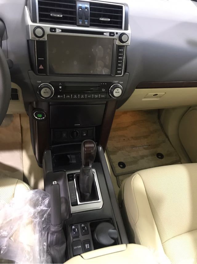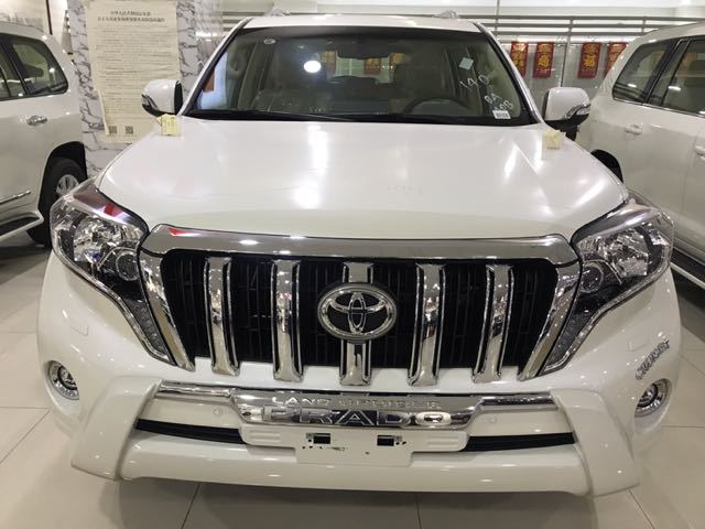配置:17款霸道4000 天窗摇启版TX.L 金属漆 后挂 天窗 摇启 7座 18轮 2气囊 防擦条 镀铬前保险杠 卤素大灯 雾灯 黑踏 行李架 电动折叠后视镜 两门智能卡 后四电眼 手动座椅 两项腰部支撑 多功能方向盘 一键启动 冰箱 大屏 巡航 胎压监测 双区自动空调 桃木挡把 高级丝绒座椅 脚垫 烟灰缸 拖钩。此款车型为本公司最新到店车型,九月份报关,生产日期最新。