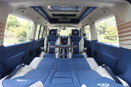 大众凯路威前排的驾驶舱也不是此款改装车的重点所在,中控台上一切都基本与原车相同,熟悉的大众设计无需再赘述。要说改变也还是有的,前排座椅变成了真皮包裹,提升了质感。前舱内饰改变较少主要升级体现在真皮的包裹和配置上,而作为主力的后舱则像是路上游艇一般的奢华。