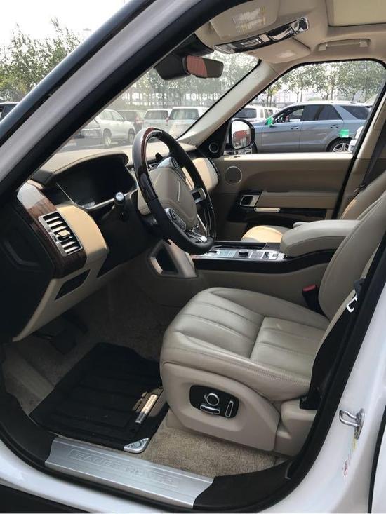 2017款美规路虎揽胜 (配置|询价)行政HSE汽油大功率380匹马力3.0T,颜色:白米配置:HSE包,驾驶员辅助包,视觉辅助包,825W高级音响包,四区空调包,保护包,桃木加热方向盘,轮毂锁、HSE包(14项牛津打孔真皮座椅、电吸门、LED氙灯、智能卡、前座椅通风、前后座椅加热、方向盘加热,20寸轮毂、全景天窗、脚感电尾门、三区空调、电动折叠记忆后视镜)、视觉辅助包(自适应氙气大灯带LED日间行车灯、自动远光灯辅助、前雾灯、第二代地形反馈系统、360环车影像、可调氛围灯、全地形控制模式)、驾驶员辅助包(驾驶者状态监测、车辆前后盲点监测、交通标志智能识别及智能限速)、高级音响包(825瓦高级音响)四区空调包前后座椅通风前排扶手箱带冰箱。