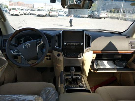 17款丰田酷路泽5700整个操控区域色调为深色系,仪表盘、方向盘和排挡等位置均配以桃木装点,尽显豪华质感。不但具有DVD导航,这款车的倒车影像还可以显示在内后视镜上;中央扶手箱还装备了冷藏箱,这些都与中规版车型有所不同。