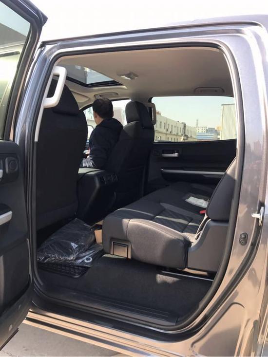 内饰的舒适程度不亚于轿车:17款丰田坦途方向盘后面就是整齐清晰的仪表,后排座椅非常舒适,椅背的倾斜度适中,腿部空间也很大,长途旅行时后排的乘客不会感到疲惫感。还增加了天窗、多功能方向盘、智能语音操作系统以及倒车影像,这些豪华配置使得坦途更具备轿车的舒适。