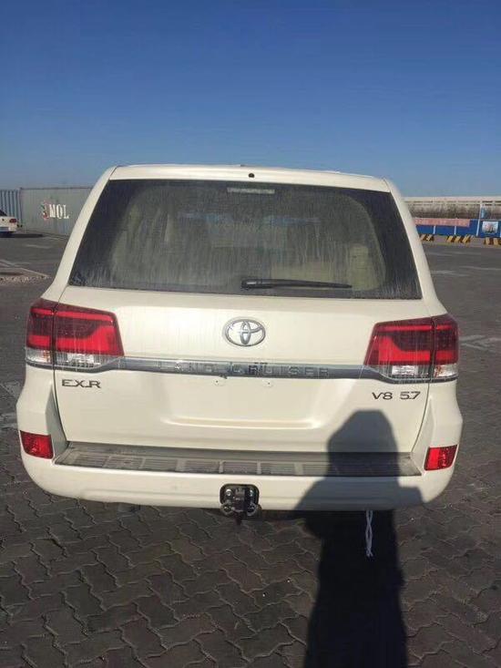 18款酷路泽5700白色EXR版配置;(7座关单 7座一致性),金属漆,蠕行系统 12气囊,无天窗,主驾驶电动座椅,中央差速锁,丝绒座椅,桃木内饰,桃木多功能方向盘,冰箱,智能卡,一键式启动,遥控启动,巡航,CD屏,迎宾灯,后视镜倒影,自动空调,气泵,蓝牙,无电动折叠后视镜,坡道辅助,氙灯LED,285-17轮毂,脚踏,前二后四电眼,拖钩,无行李架,雾灯,双油底挂,灰色亮条中网,胎压监测