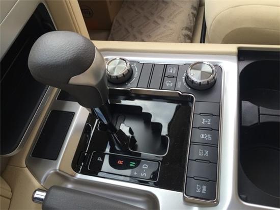17款丰田兰德酷路泽4000操控台没有过于繁杂的操控按钮,多功能方向盘方便了驾驶员的操控,轻松驾驶。设计师并没有忘记它越野车的身份,所以你能找到很多硬朗的线条,其实用性和舒适性更可媲美豪华轿车。中控台换成了具有磨沙手感的金属板件,增强了内饰的质感。上方为多功能显示屏,中间为音响控制系统,左右两侧为空调出风口和空调温度控制按键。
