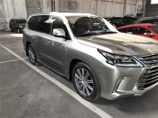 2018款雷克萨斯LX570中东版配置:特殊金属漆(超音速钛银)、凌志标照地镭射灯、21轮、遥控启动、外置脱钩、车身防擦条、流水式转向灯、138升双油箱、 SPORTPLUS标(运动加强版、底盘及发动机运动模式调校) 换挡拨片、冰箱、天窗、智能卡、电眼、环影、后娱、底盘升降、前座椅通风加热(真皮)、导航、倒影、桃木多功能方向盘、桃木内饰、铝制行李架、航空照明脚踏、LED 氙灯 大灯清洗、迎宾灯、四区空调、三排电动、电尾门、拖车钩、ACC自适应巡航、后排遮阳帘、风挡玻璃除冰功能、雷达测距