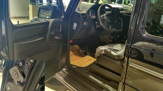 2017款奔驰G550内饰方面:图片当中我特意标识的是奔驰G系列一直保持的车门锁,奔驰G的关门的声音也体现着硬汉的本色,其次座椅的包裹性,和舒适度还是很不错的,座椅很软,腰部支撑也是很到位,这也是铁汉柔情的一面,奔驰的座椅调节一直设计在门板上这也是人性化的设计至少不用在座椅调节的时候不用低头或去凭感觉去调节。